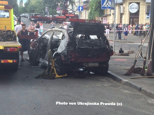 Chefberater des Innenministeriums, Zorjan Schkirjak, auf seiner Facebook-Seite. Nach seiner Meinung könnte es auch möglich sein, dass der Sprengsatz ferngezündet oder mittels eines Zeitzünders ausgelöst wurde.